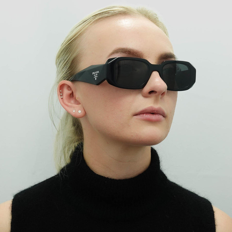 Prada Symbole Sunglasses - Women Luxury Rectangle PR17WS 1AB5S0 - Black Frame - Dark Grey Lens